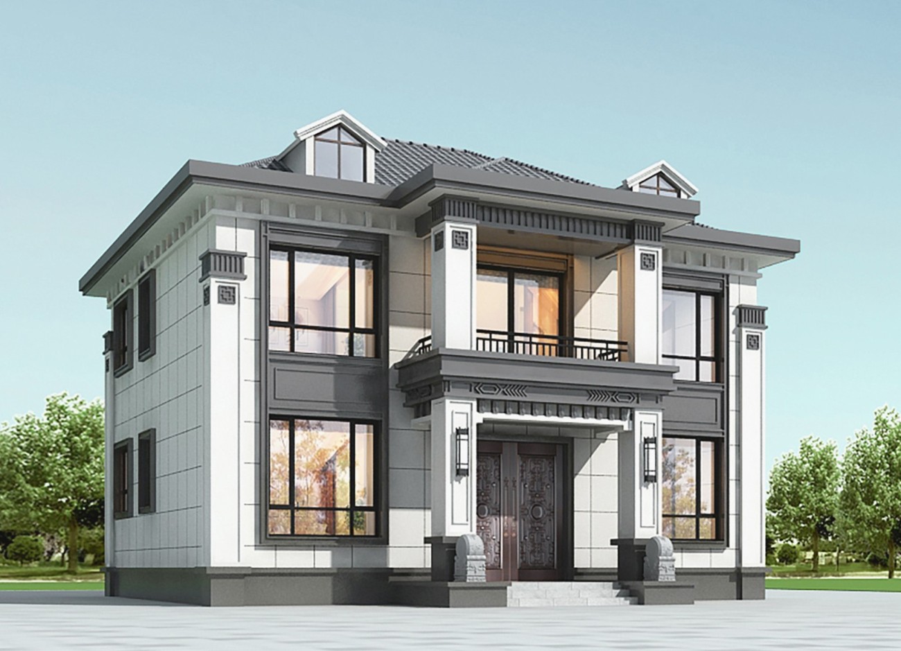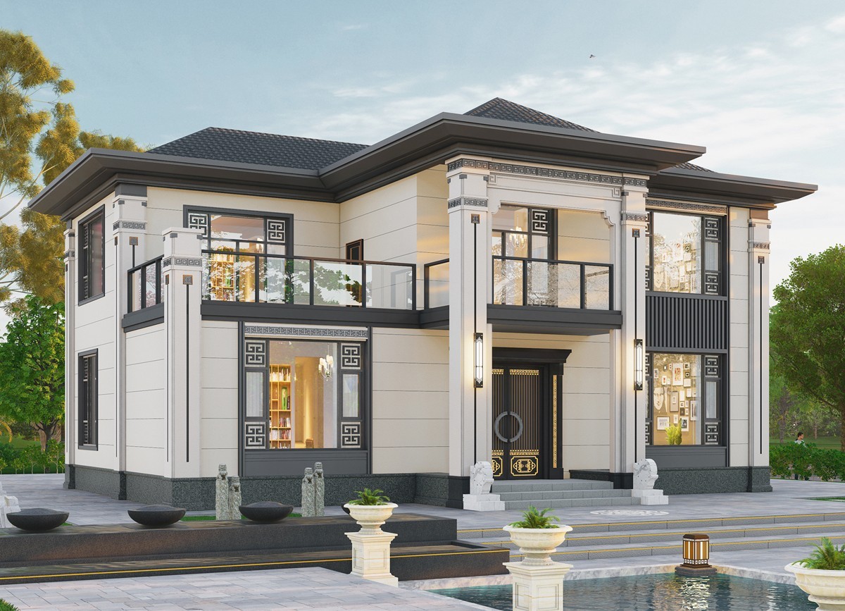 筠连011 两层新中式(15.43x12.66米)-【易设计】